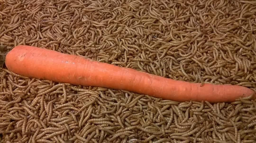 This is where the mealworms and beetles live! They have their own little climate-controlled shed.